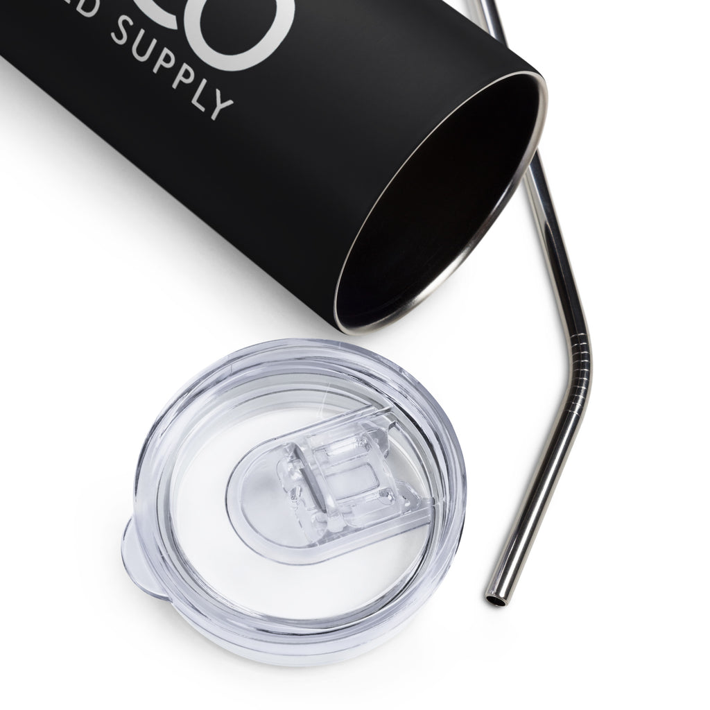 Enjoy hot or cold drinks on the go with this stylish stainless steel tumbler! This reusable tumbler with a metal straw is a perfect combo for hot or cold drinks at any time of the day.